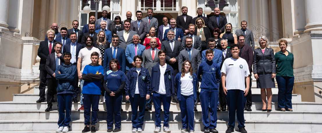 Oito alunos da rede pública de ensino foram empossados vereadores mirins da capital do Paraná, nesta segunda-feira (23), durante a sessão plenária da Câmara Municipal de Curitiba (CMC). Eles comporão a quinta turma do Parlamento Jovem, que é uma iniciativa de formação política promovida pelo Tribunal Regional Eleitoral do Paraná (TRE-PR), em parceria com a CMC. Eles participaram de eleições simuladas nos colégios e poderão sugerir projetos de lei aos vereadores. A cerimônia de diplomação dos eleitos foi realizada no fim de agosto.